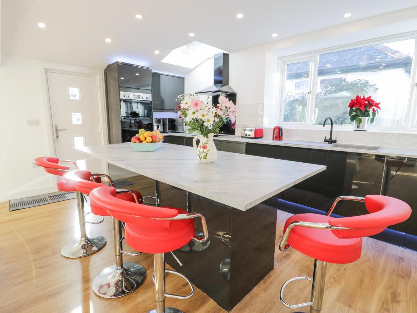 Holiday Home. The fireplace is a top feature of this holiday home. This spacious holiday home comes with 3 bedrooms, a kitchen and 2 bathrooms with a walk-in shower. The well-equipped kitchen has a refrigerator, a dishwasher, an oven and a microwave. The holiday home features a washing machine, an electric kettle, tumble dryer, a TV, as well as sea views. The unit has 4 beds.