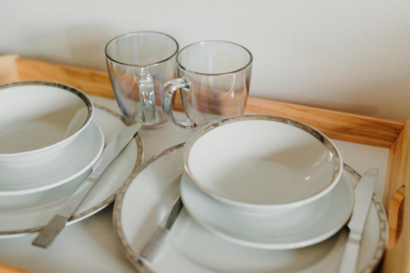 Shared stationery such as printed menus, magazines, pens, and paper removed
