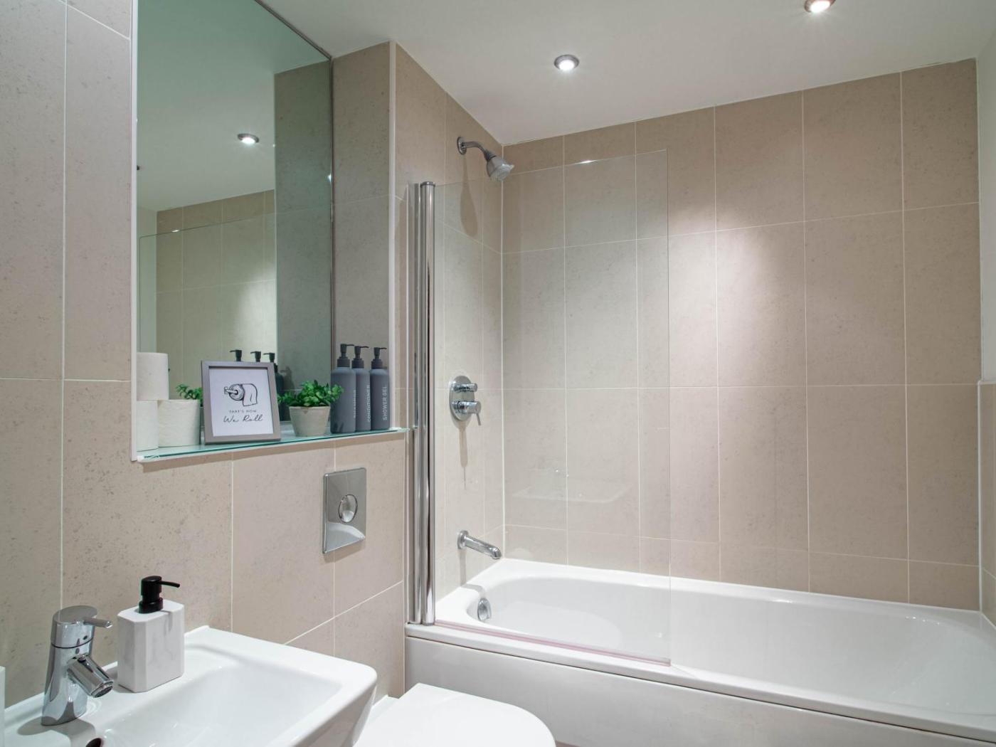 Two-Bedroom Apartment. This spacious apartment includes 1 living room, 1 separate bedroom and 1 bathroom with a bath and free toiletries. In the kitchen, guests will find a stovetop, a refrigerator, a dishwasher and kitchenware. The apartment offers a flat-screen TV with streaming services, a washing machine, a private entrance, a tea and coffee maker as well as river views. The unit has 3 beds.