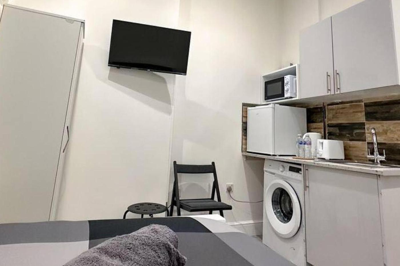 Studio. The well-fitted kitchen features a refrigerator, kitchenware, a microwave and a toaster. The studio offers a washing machine, a private entrance, a seating area, an electric kettle and a TV. The unit offers 1 bed.
