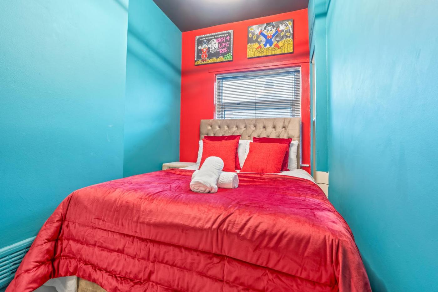 Four-Bedroom House. This spacious holiday home features 1 living room, 4 separate bedrooms and 1 bathroom with a bath and a shower. In the well-fitted kitchen, guests will find a stovetop, a refrigerator, an oven and a microwave. The holiday home features a washing machine, a seating area, a dining area, a flat-screen TV with streaming services, as well as a quiet street view. The unit has 7 beds.
