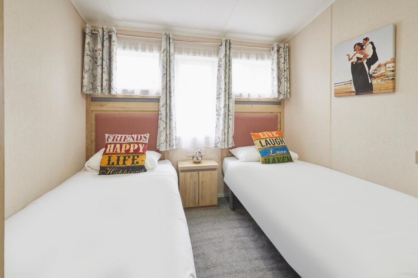 Three-Bedroom Lodge. The hot tub and fireplace are the standout features of this holiday home. Boasting a private entrance, this holiday home features 1 living room, 3 separate bedrooms and 2 bathrooms with a bath and a shower. Meals can be prepared in the well-fitted kitchen, which has a stovetop, a refrigerator, a dishwasher and kitchenware. Featuring a balcony with garden views, this holiday home also features a washing machine and a flat-screen TV. The unit has 6 beds.